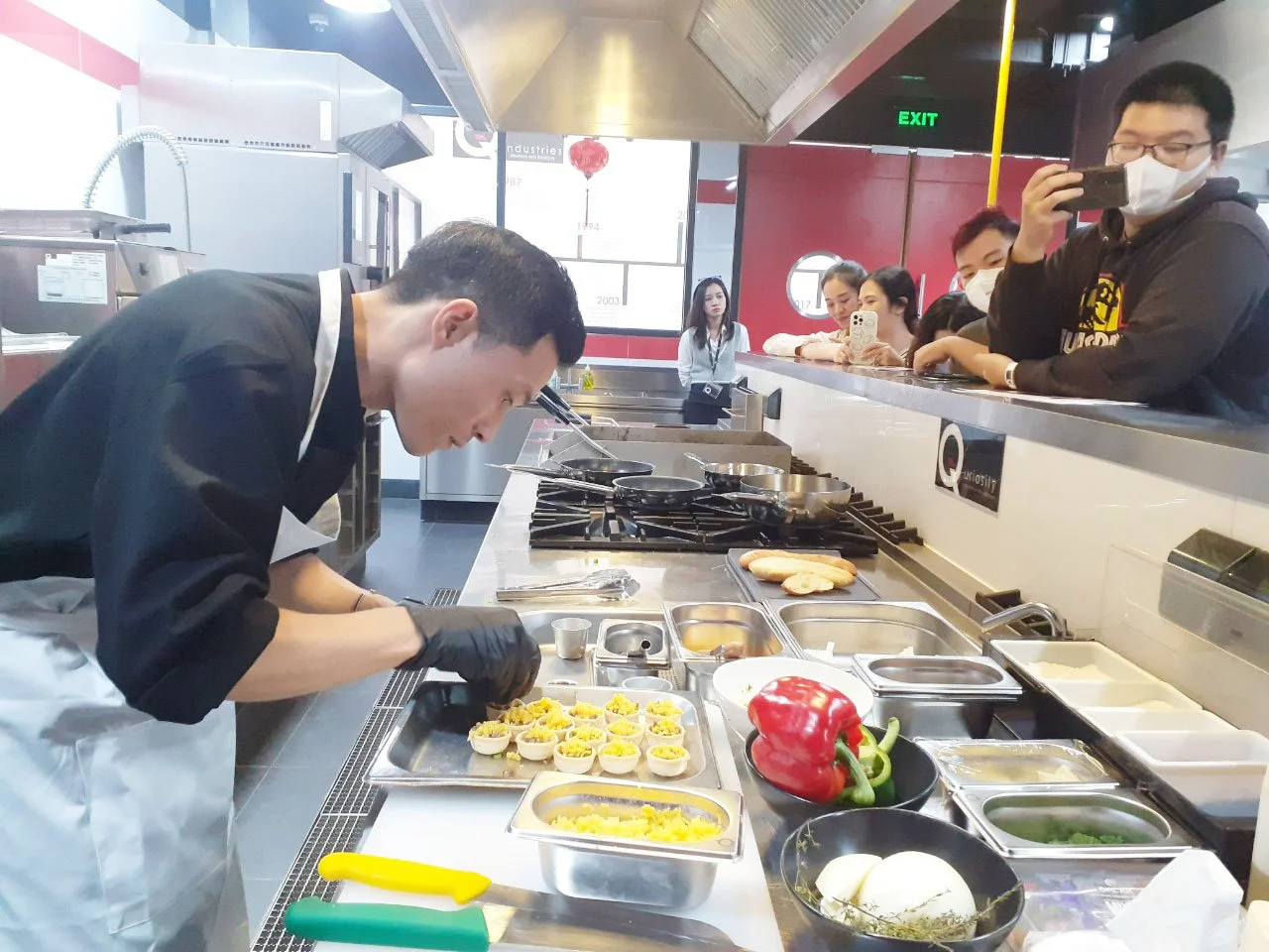 After that, our guests visited the 5-star standard kitchen of Q.uriosity Culinary Academy. They could directly observe the fascinating cooking performance of chef Sugar with the dish: "Beef Tart with Cheese.”